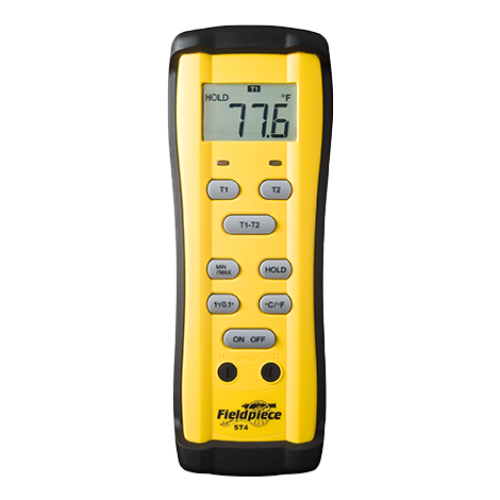 Dizajniran za HVAC/R, dvostruki mjerač temperature, model ST4, mjeri dvije temperature i izračunava razliku u engleskim ili metričkim jedinicama. Nudi tehničarima sve prednosti digitalnog termometra u dizajnu za teške uvjete rada.